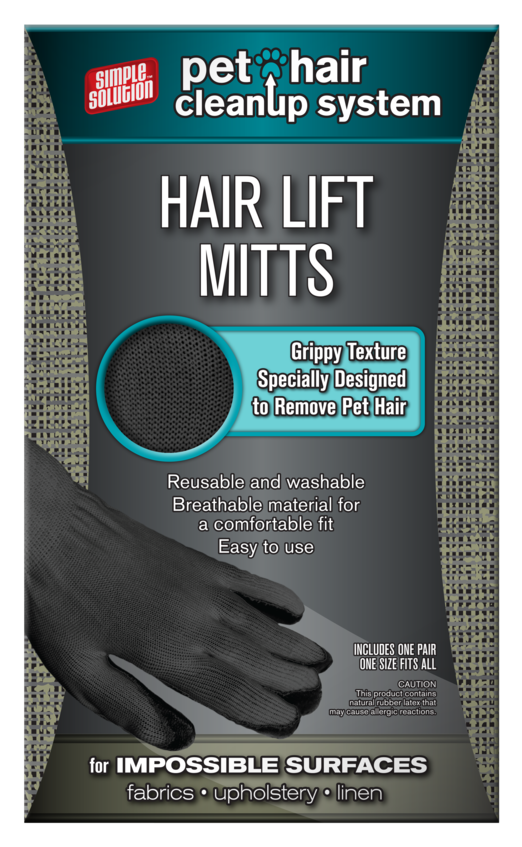 Rukavice značky Simple Solution mají jedinečný povrch, díky kterému lze odstranit chlupy i z problémových povrchů jako jsou textil, koberce, závěsy, povlečení a podobně.